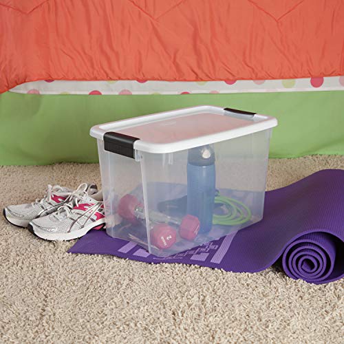 #3 Sterilite 19859806, 30 Quart/28 Liter Ultra Latch Box, Clear with a White Lid and Black Latches, 6-Pack