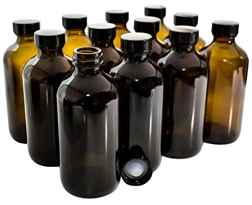 #1 (12 Pack) 8 oz. Amber Boston Round with Black Poly Cone Cap