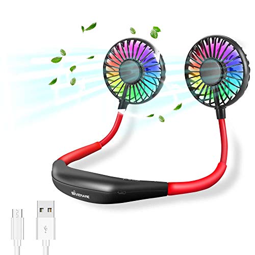 #1 GIVERARE Hands Free Neck Fan, Portable Hanging Necklace Sports LED Fan, USB Rechargeable Personal Fan, Headphone Design, 3-6 Working Hours, 3 Speeds, for Travel Camping Sports Traveling Reading-Black