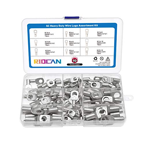 #1 RIOCAN 20Pcs Heavy Duty Wire Cable Lugs Bolt Hole Tinned Copper Eyelets Tubular Battery SC Ring Terminals Connectors